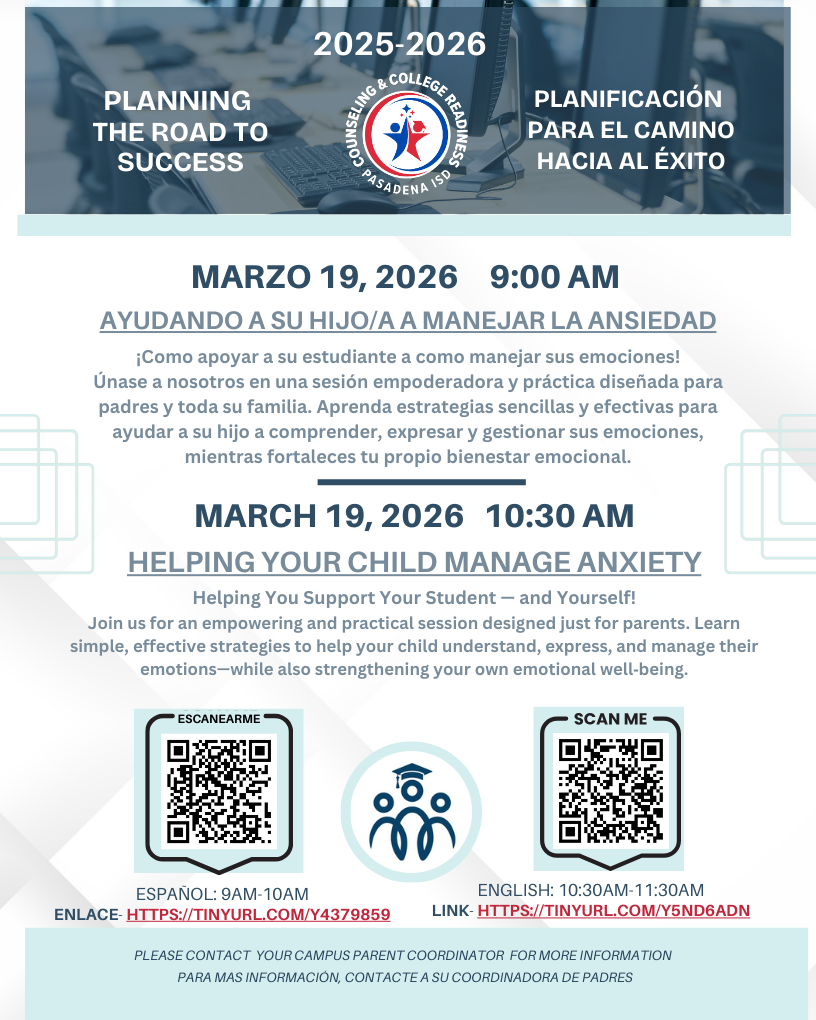 For general assistance, please email: BushES@pasadenaisd.org