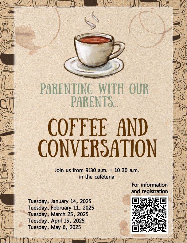 Join us for our next Coffee and Conversation meeting on Tuesday, Jan. 14th at 9:30am. Good topics, good conversations, and coffee!!